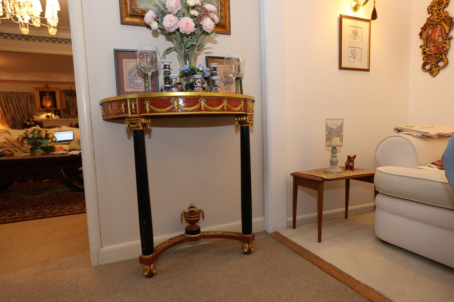Elegant Gilded Marble-Top Accent Table
