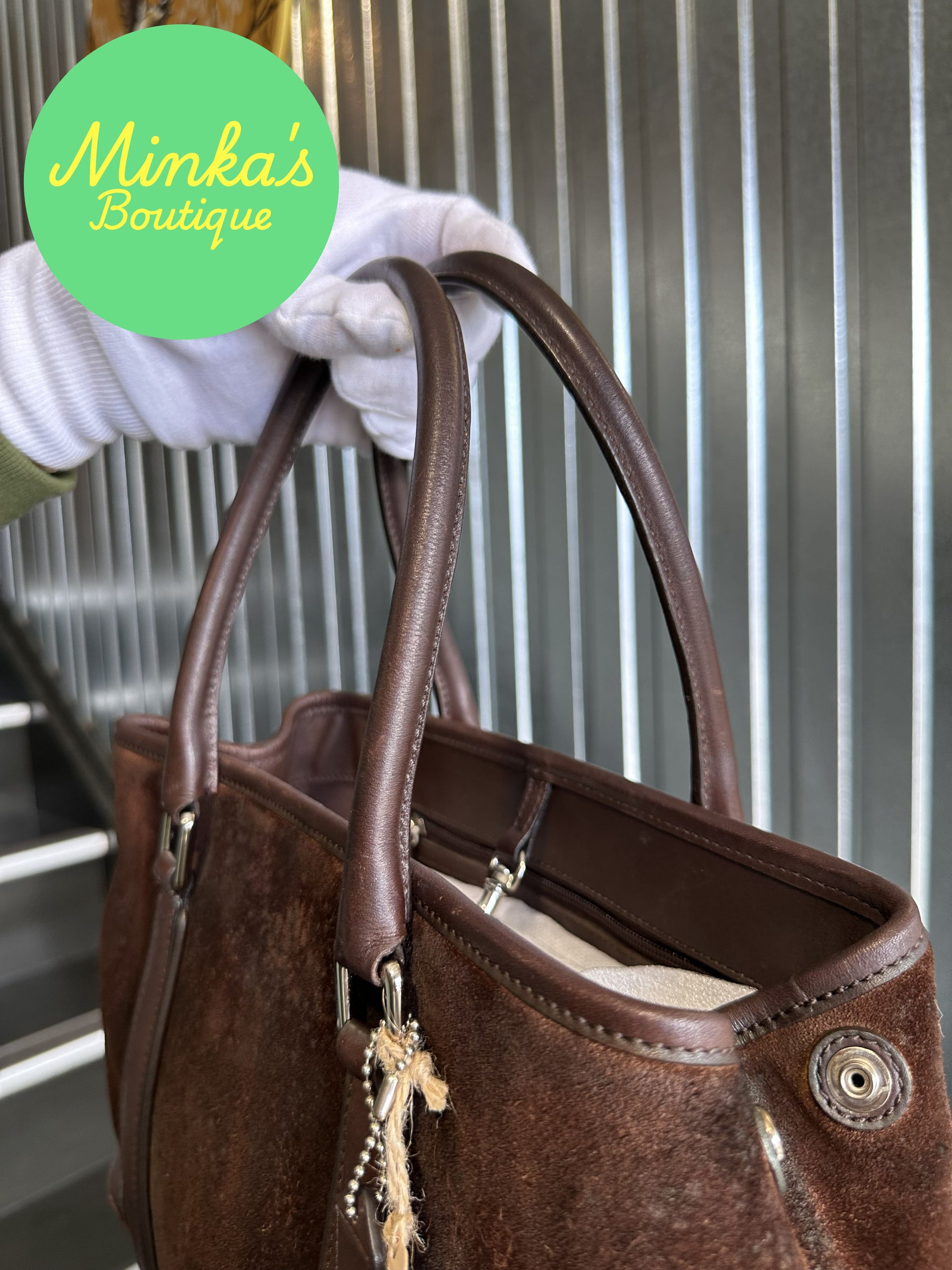 The Coach Hampton Handbag is a timeless classic, celebrated for its understated elegance and soft, slouchy silhouette. Crafted from rich brown suede leather, it offers a luxurious texture complemented by smooth leather trim and subtle hardware detailing. Its minimalist design makes it a versatile piece, perfect for both everyday wear and more polished occasions.